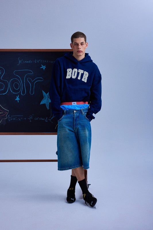 Deep Blue Campus Style Large Logo Oversized Hoodie