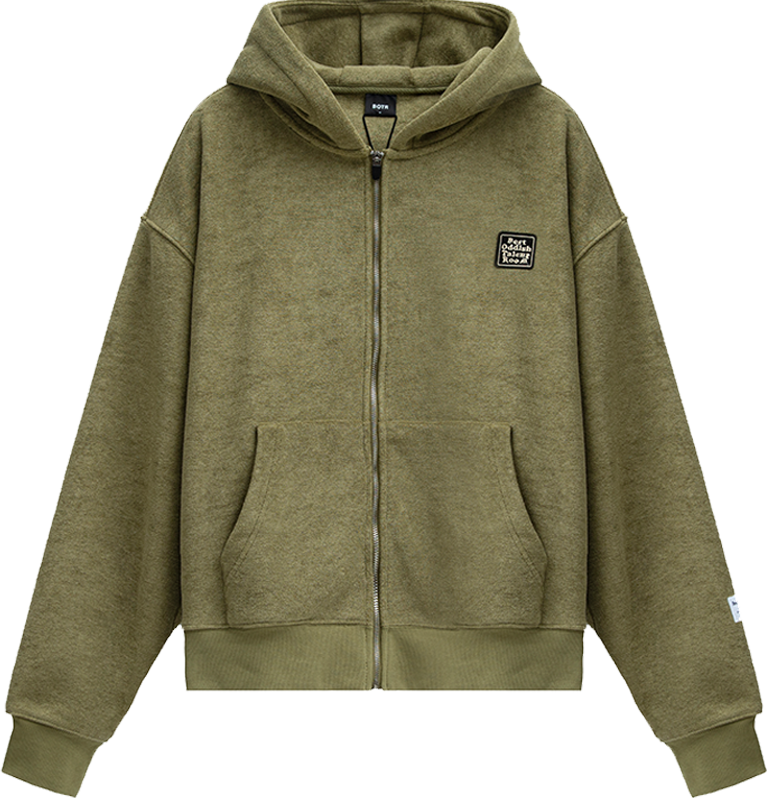 This green fleece hoodie features a back slogan print and oversized front pocket, offering comfort and practicality. The hoodie’s cuffs are finished with the brand’s signature logo.