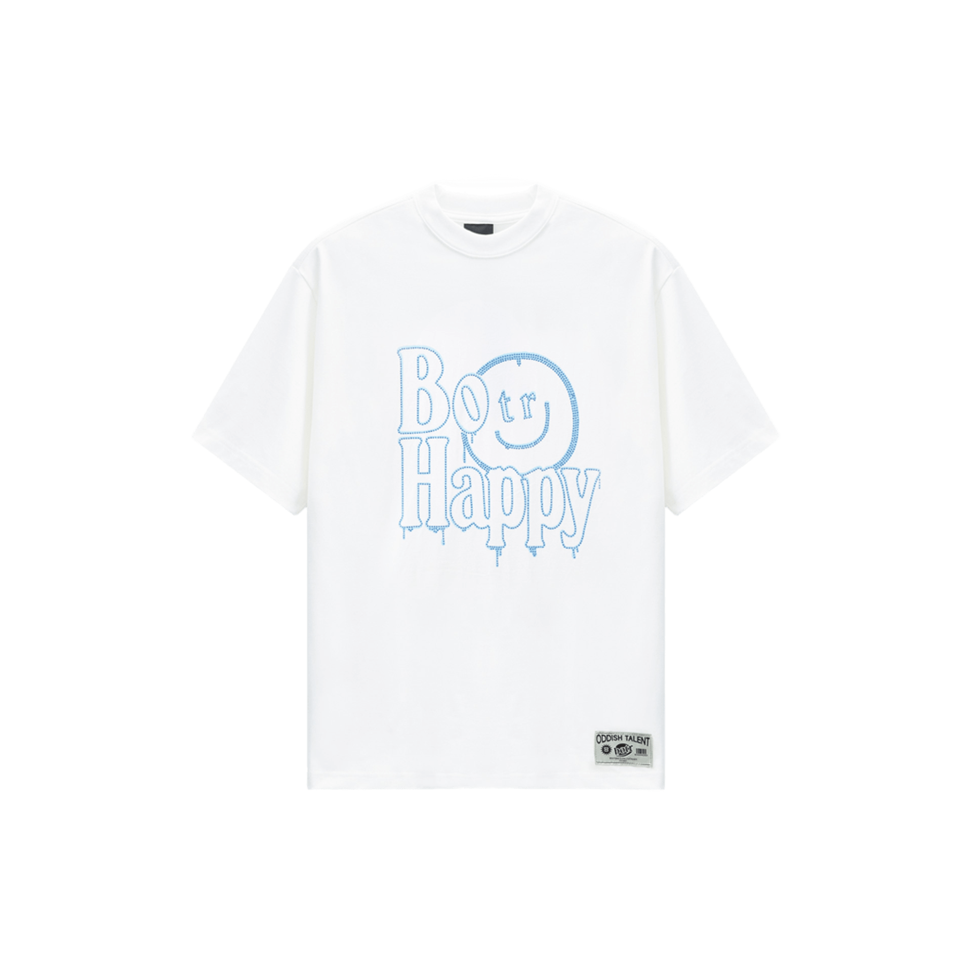 Rhinestones Blue Smiley Face Print T-Shirt