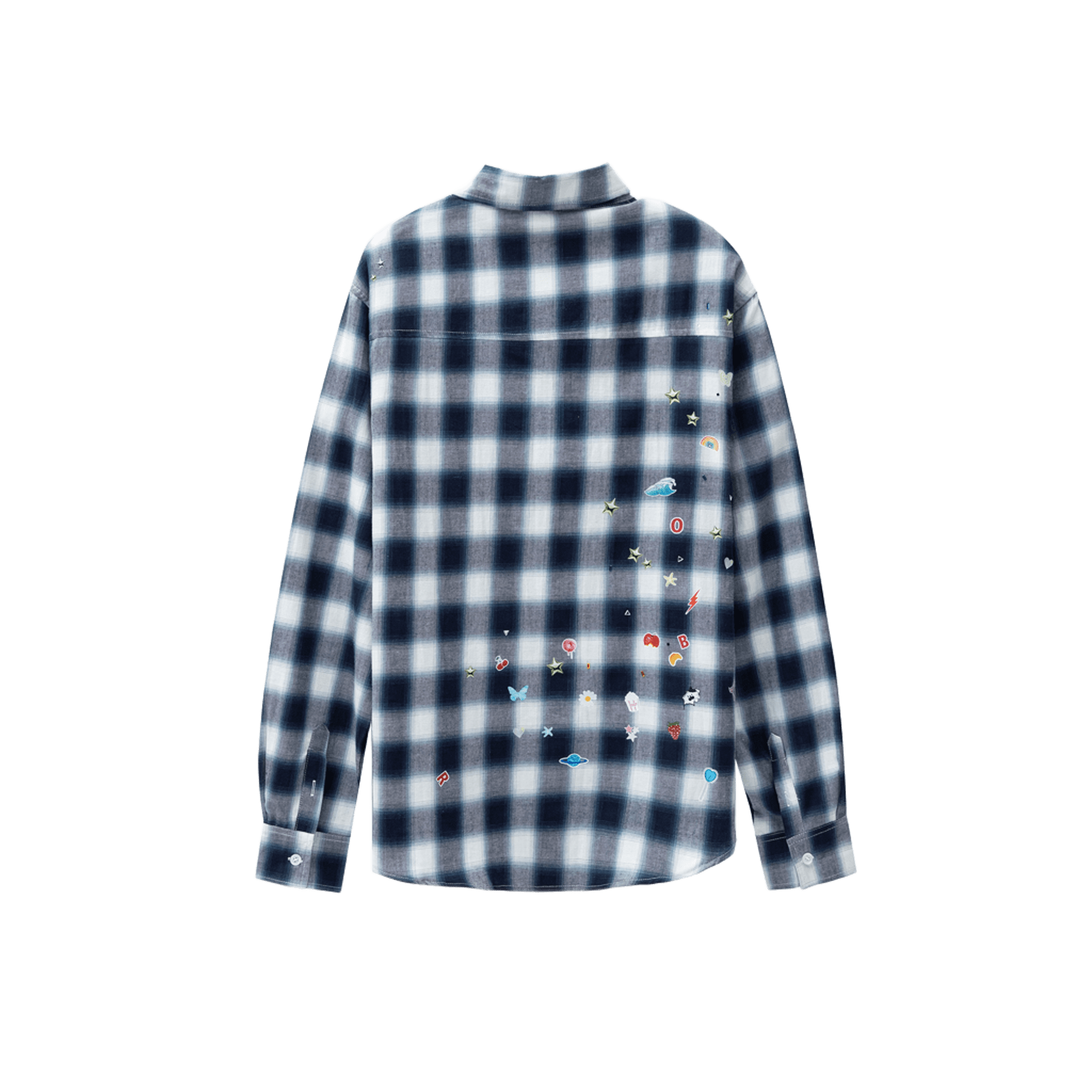 This plaid shirt is a wardrobe essential. Crafted from comfortable fabric, it features sticker prints and rhinestone decorations. Perfect for any occasion, it can be worn alone or layered, seamlessly fitting into various styling needs.