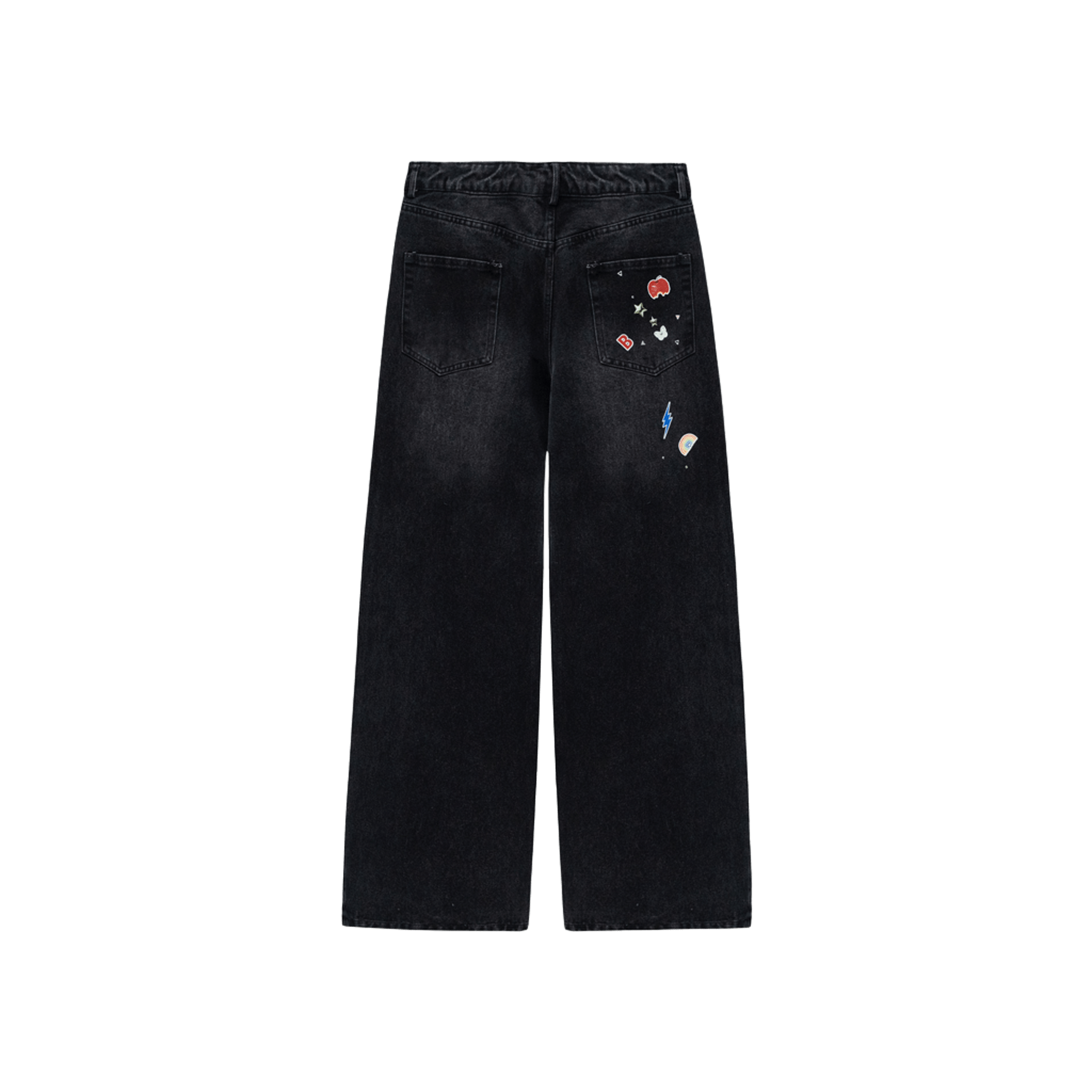Sticker Print Rhinestone Straight-Leg Loose Jeans