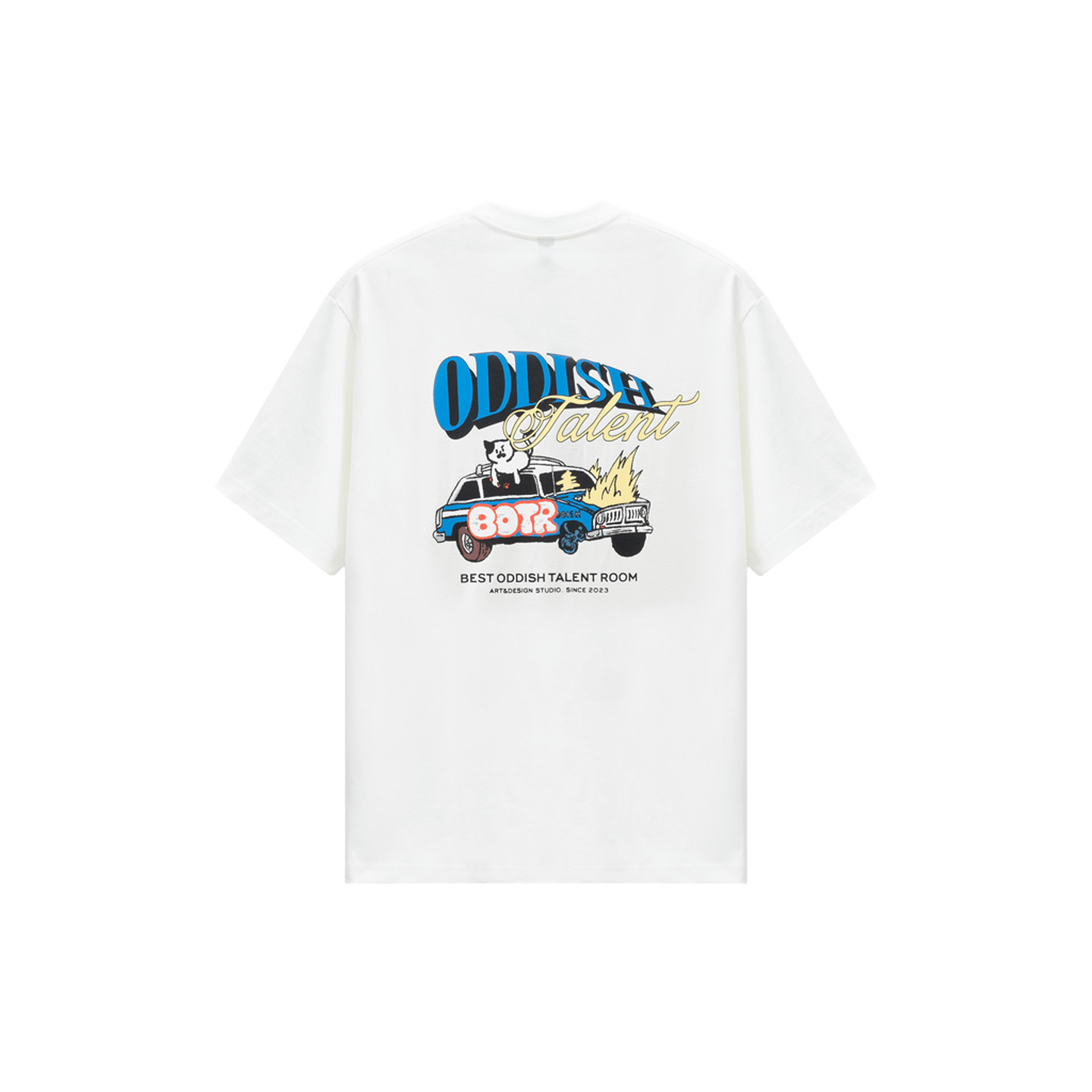 This basic short sleeve t-shirt is a wardrobe essential. It is made from a comfortable fabric and features a painted vintage print design. Perfect for any occasion, it can be worn alone or layered and is perfect for a variety of looks.